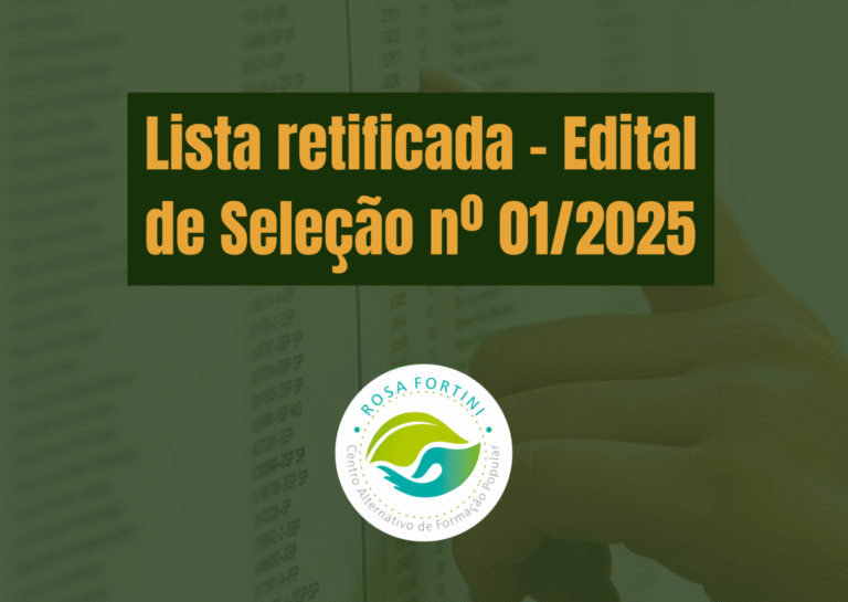 Centro Rosa Fortini divulga lista retificada de candidatos aprovados O Centro Rosa Fortini divulga, nesta quinta-feira (8), uma lista retificada de candidatos aprovados no Processo Seletivo para Formação de Leia mais » 08.05.2025