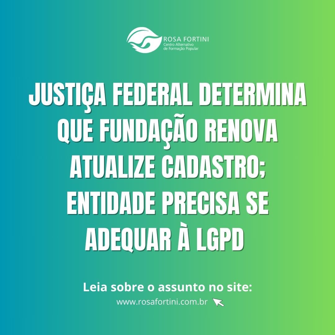 Justiça Federal determina que Fundação Renova atualize cadastro; entidade precisa se adequar à LGPD Leia mais » 16.08.2024