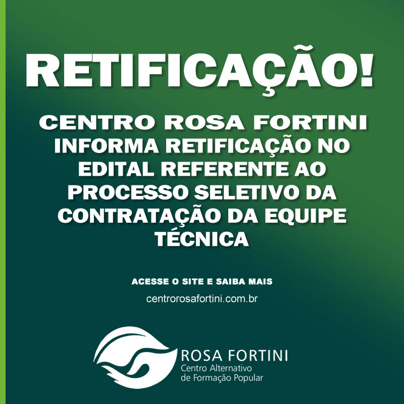 Assessoria Técnica Independente Centro Rosa Fortini comunica retificação no Edital de Seleção de Profissionais Leia mais » 10.06.2024