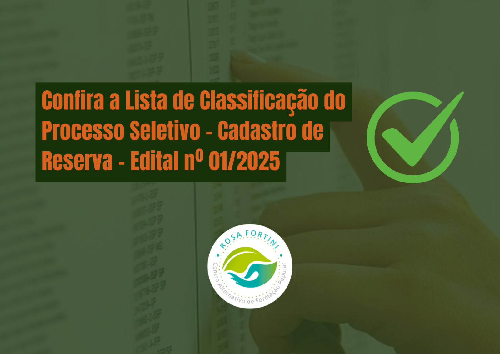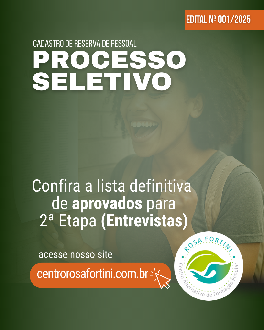 Centro Rosa Fortini comunica a suspensão parcial do Processo Seletivo do Edital 001/2025 Leia mais » 29.04.2025