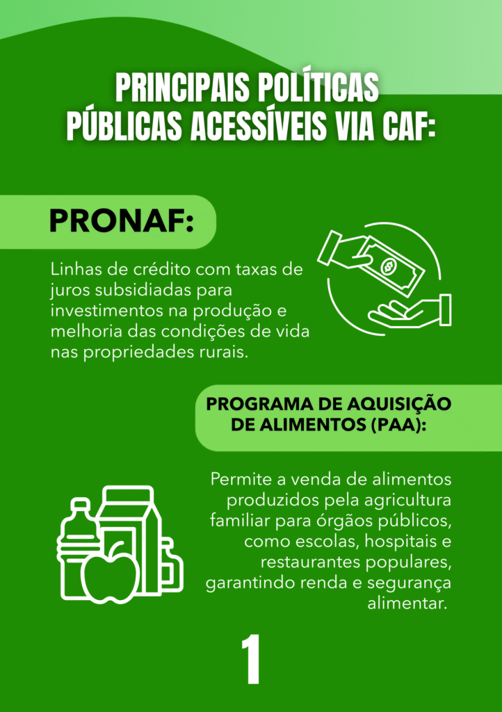 Por isso é essencial que esses(as) agricultores(as) conheçam os programas e benefícios disponíveis para a agricultura familiar. Muitos desses direitos podem ser acessados após a inscrição no cadastro oficial do governo, que reconhece e garante o acesso a políticas públicas voltadas ao setor.